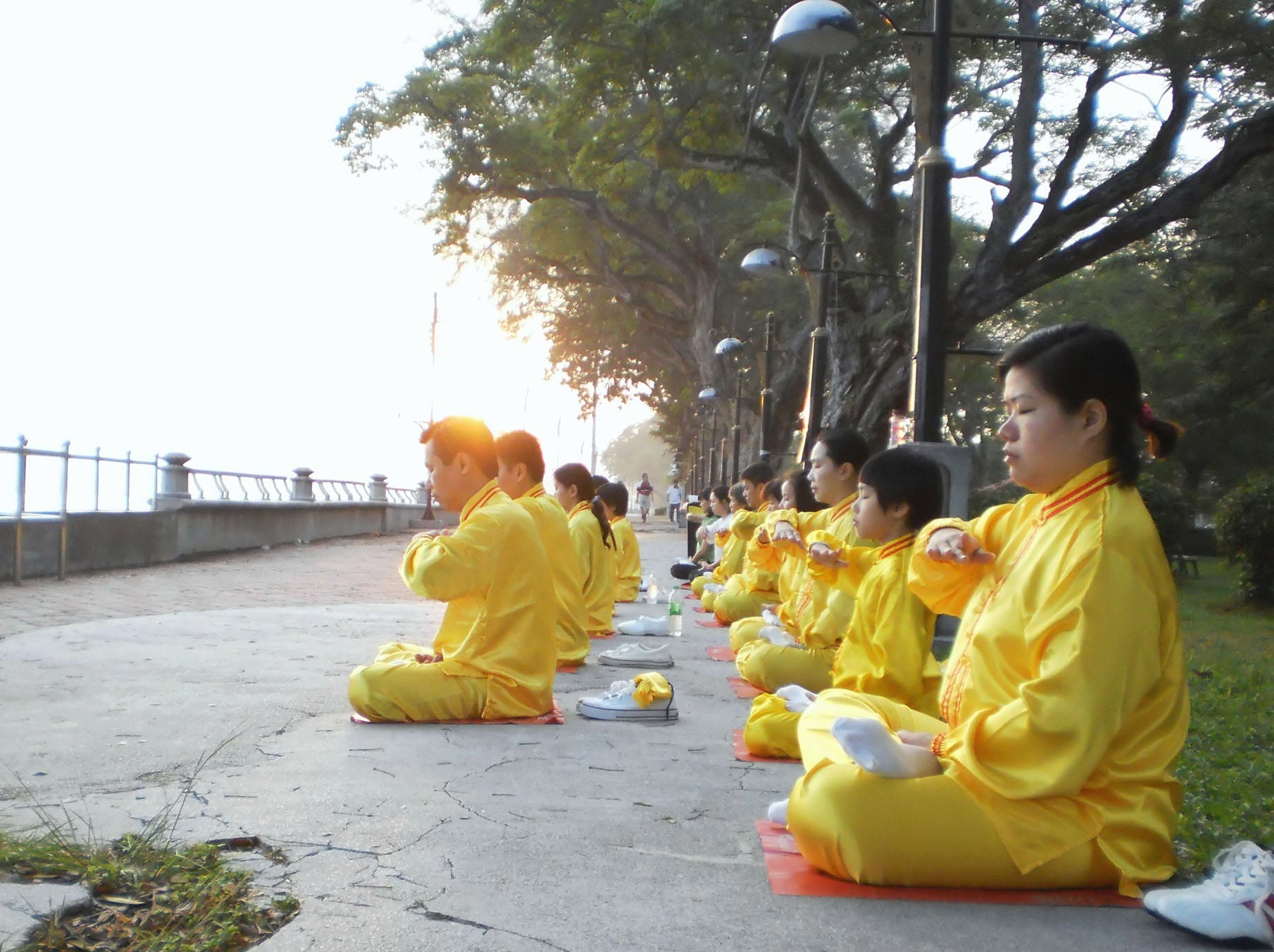 有时学员们会在超市的舞台上展示功法,或表演腰鼓;有时会在柔佛州麻河集体炼功洪法。每当学员们在超市或户外活动时,都会引起人们驻足观看,不时有人表示要学功,及愿意听取学员和他们讲真相;也有人立即希望可以买到大法书籍。