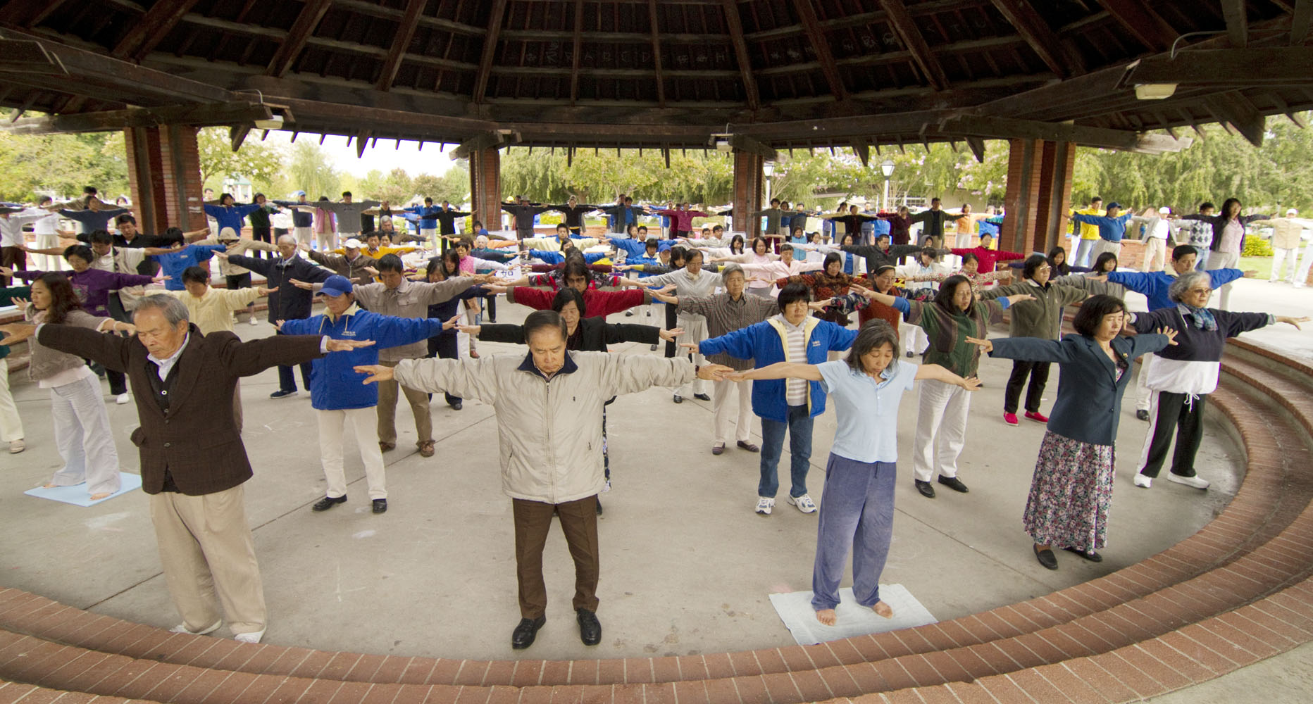 ![]() 二零一零年十月三日早晨,旧金山法轮功学员集体炼功。 |