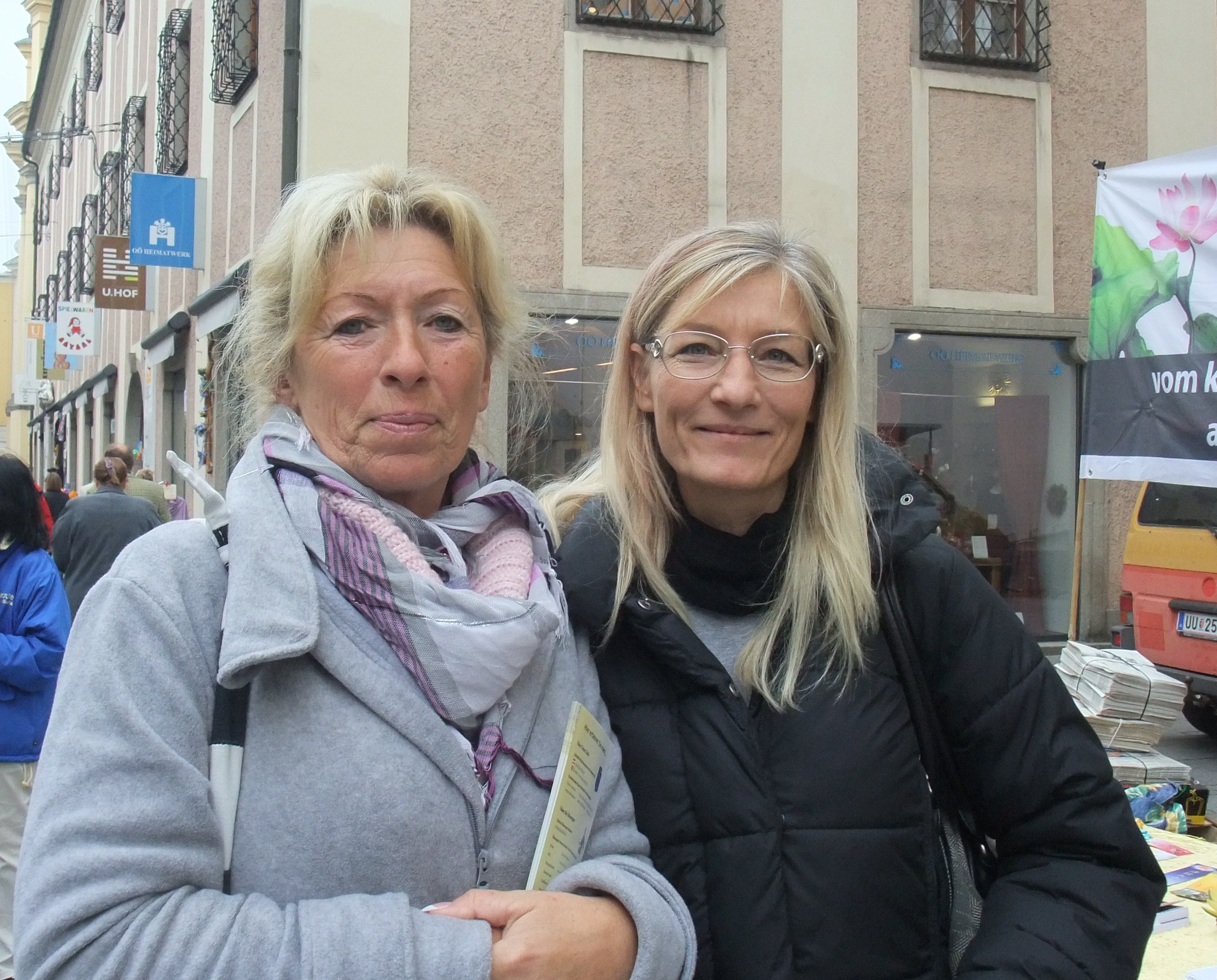 刚开始修炼一个月的法轮功新学员(右)和她的朋友
