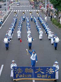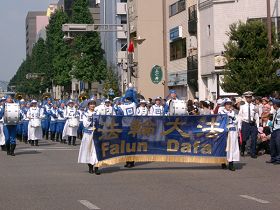 音乐队的游行活动从中午开始,一直进行到下午二点左右,共有十一个音乐团体参加。在岐阜市中心的金华桥大道(Kinkabashi-Dori)上举办的游行,吸引了众多的市民们观看。当身着蓝白色唐代服装朝气蓬勃、步伐整齐的天国乐团团员们一出现,立即吸引了人们的视线。沿途有许多市民纷纷给天国乐团的队伍摄影、录像,有的市民们鼓掌欢迎,人们的脸上洋溢着欢乐的表情。天国乐团在游行中演奏了“法轮大法好”、“法鼓法号震十方”、“法正乾坤”和“送宝”等乐曲,受到了沿途人们的欢迎。