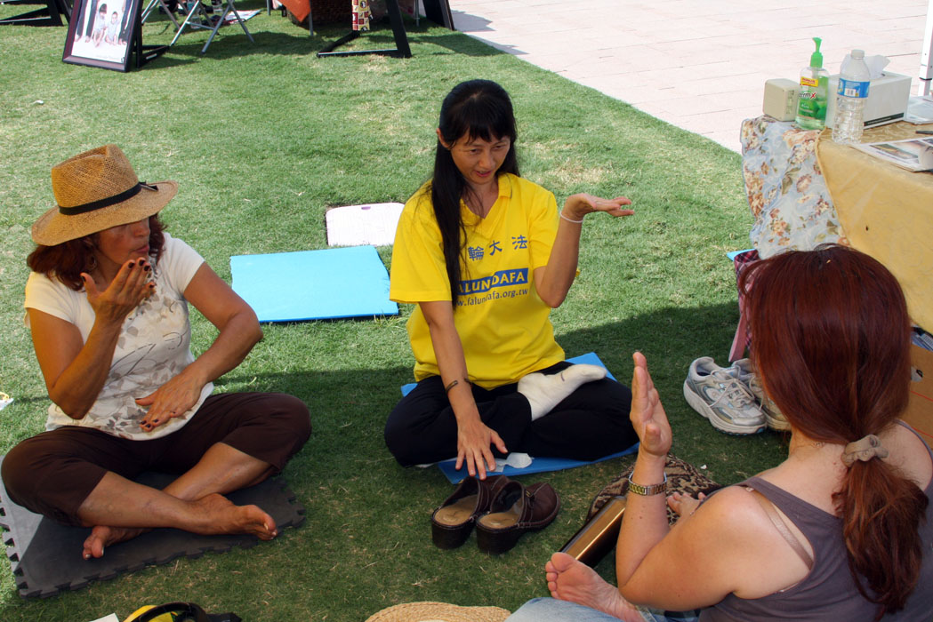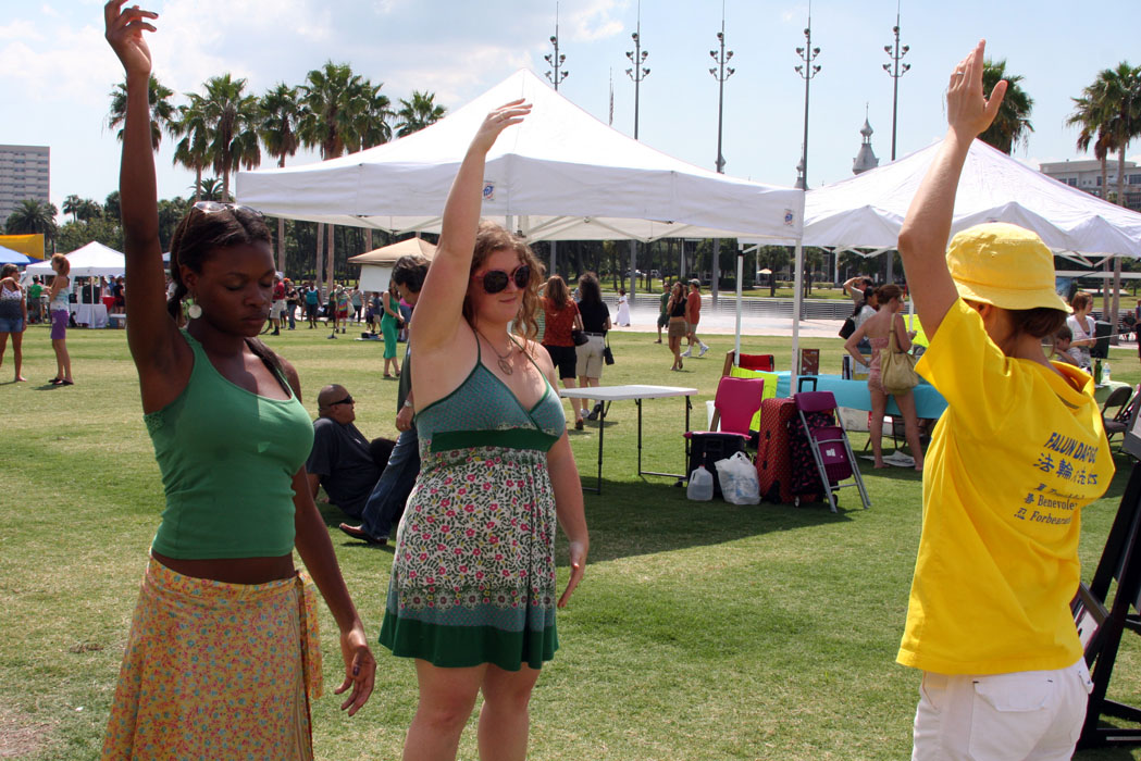 ![]() 佛州坦帕素食节上,法轮功学员演示功法 |