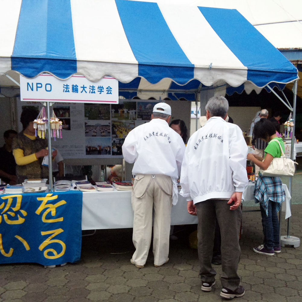 当天气温适宜,暖风徐徐,游客很多。人们对介绍法轮大法的展位表示出了非常大的兴趣。有些人想了解法轮功,要了资料和当地炼功点联络人的电话。日本人对于折纸有着非常大的热情,对于法轮功学员可以折出美丽精致的纸莲花表示惊叹。很多人跟着一起现场学习如何折叠莲花,并且跟着一起用中文念“法轮大法好”,每个人离开的时候脸上都挂着满足的笑容。还有些中国人一看是华人的摊位,就过来,一边折纸莲花一边了解大法的真相,听明白法轮功无辜遭受中共迫害的真相后,有的当场声明退出中共相关组织。还有一位美国人直接买了教功的光盘,并说他早已看过《转法轮》了。