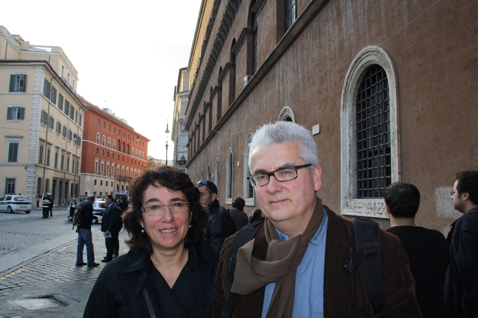 一家来罗马游玩的德国人,因为看不懂意大利文的资料而着急,其中还有一位中国大陆的姑娘,那位姑娘对一些问题还不太清楚。恰巧遇到一位从德国来的中国学员给他们解释了为什么法轮功学员要举办这样的游行,他们非常聚精会神地听着,后来,中国姑娘接过了中文资料,德国人如愿拿到德文资料,女主人表示(中共迫害法轮功)“太残忍了”。