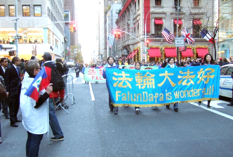 【明慧网二零一零年十一月十四日】(明慧记者采菊纽约报道)二零一零年十一月十一日是美国传统的老兵节,法轮功学员再次受邀参加纽约市第九十一届老兵节游行。今年游行的主题是“自由是要付出的”。