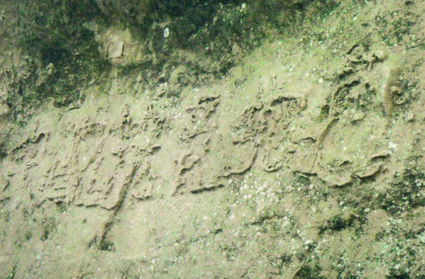 我来到那块闻名中外的藏字石前,只见六个苍劲有力的大字“中国共产党亡”立即映入眼帘,好清晰啊!我与亲戚看了好一会儿,就用相机将这六个大字拍了几张,亲戚还帮我拍了一张我与藏字石的合影照片。