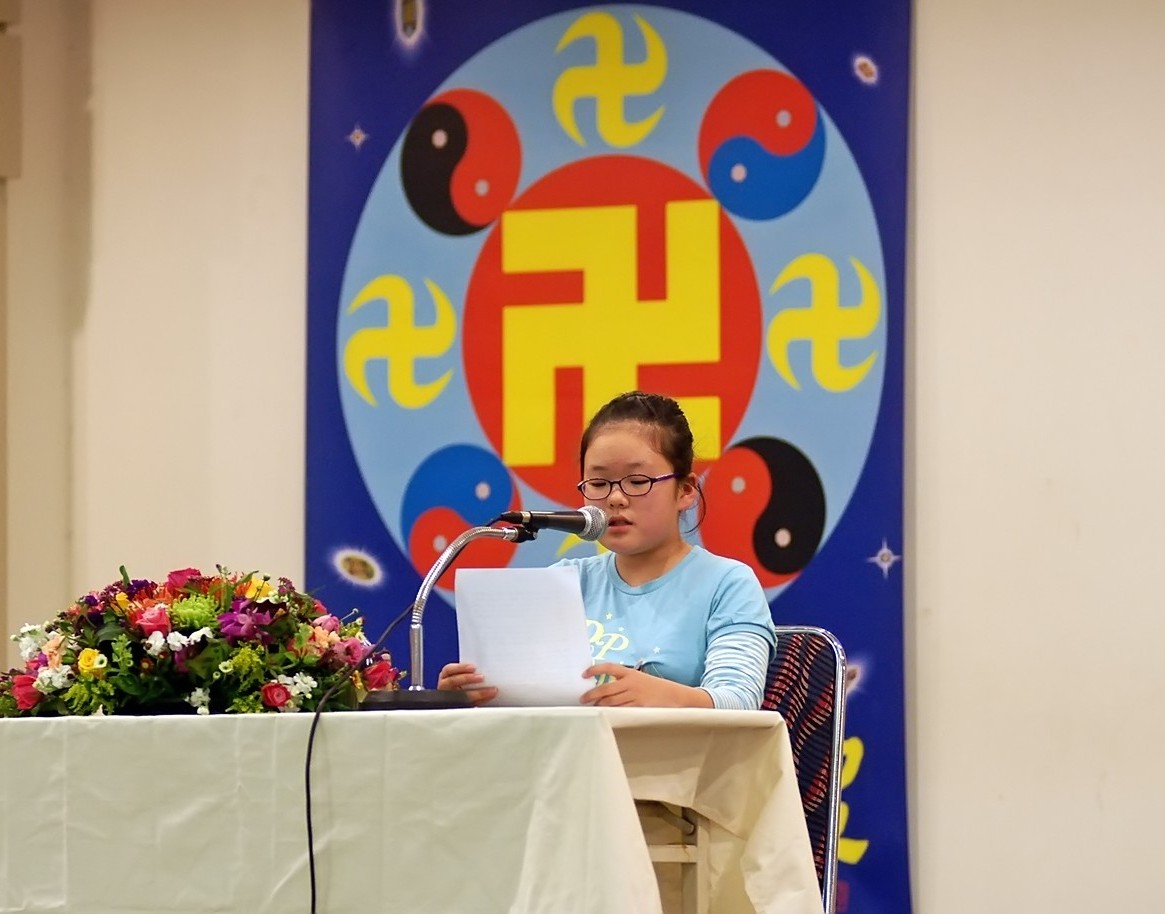 赵先生是韩国一家大企业的电子工程师,他讲述了在寻找出门未归的孩子的过程中,悟到救人的急迫和师父对众生的慈悲苦度。他宣读交流文章时哽咽着说:“我在找寻孩子的几个小时当中,那种心情是多么的急切,然而我在救度众生的时候有那么急切吗?找孩子的几个小时那么的心痛,那么师尊对那些不精進的弟子们该是何等的痛心啊?想起师尊对弟子们反反复复的嘱咐,要多学法、多救度众生。回忆起师尊那慈悲眼神中所包含的期望,我却对这洪大的慈悲随意的无视了,想到这里,我觉得实在是对不起师尊,对自己非常非常的痛心。师尊为了众生,为了众弟子们把时间一再的延长,一再的延长,我们应该珍惜每一分每一秒啊!今天,我们无论多么困苦,多么艰难,都要跟着师尊完成史前的大愿!”