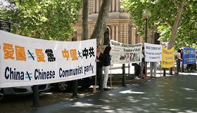 ![]() 悉尼市中心声援中国民众三退大潮的横幅 |