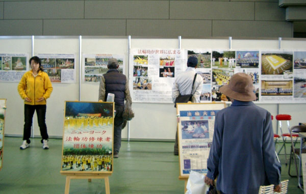 【明慧网二零一零年十一月二十四日】二零一零年十一月二十日(星期六),日本法轮功学员参加了在爱知县稻泽市祖父江町(Sobue-Cho,Inazawa-City,Aichi-Prov.)体育馆内举办的“第十三届祖父江银杏黄叶节”(The 13th Ginkgo's Festival of Sobue),并义务教功。参加活动的人们有幸听闻了法轮大法的福音。许多市民对印有中英文“法轮大法好,世界需要真善忍”的小莲花喜爱有加。小莲花刚过中午就派发一空。
