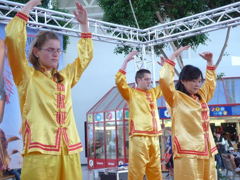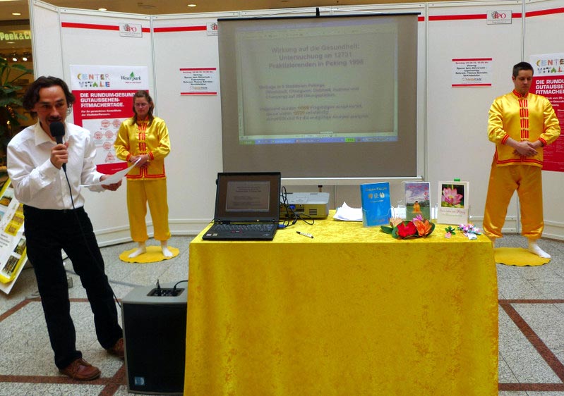 本次健康周期间,众多参观者被法轮功功法舒缓的动作和祥和的炼功场面所吸引,人们对法轮功的神奇功效尤为感兴趣。早在一九九八年,中国多家权威医疗研究机构对三万五千余名法轮功修炼者进行调查,证明法轮功在祛病健身方面功效显著。