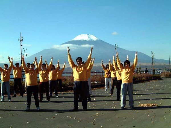 ![]() 日本法轮功学员在位于东京西南方约八十公里处的日本第一高峰富士山(FujiSan)下炼功 |