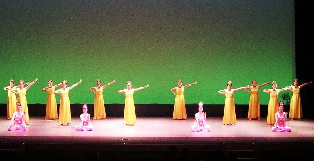 二零零八年九月十三日,日本法轮功学员的天姿舞蹈队及明慧学校的大法小弟子们受主办方邀请,参加了在日本东京都葛饰区柴又帝释天题经寺内举行的宵夜游艺会的晚会演出。