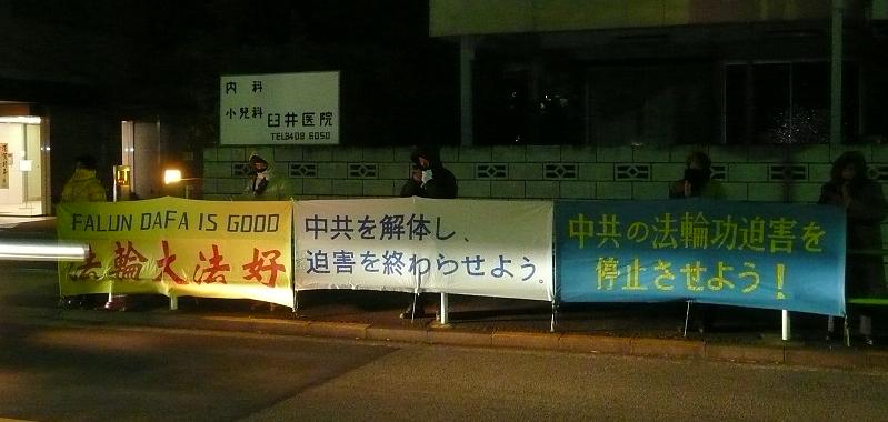 日本学员连续十年在东京中使馆前打横幅,讲真相,中共的暴行曝光在日本民众眼前;每年岁末年初,东京和周边的部份法轮功学员都集中到中使馆前抗议。人们静静地拉起横幅,站立在冬夜的寒风中,表达制止迫害的心愿。