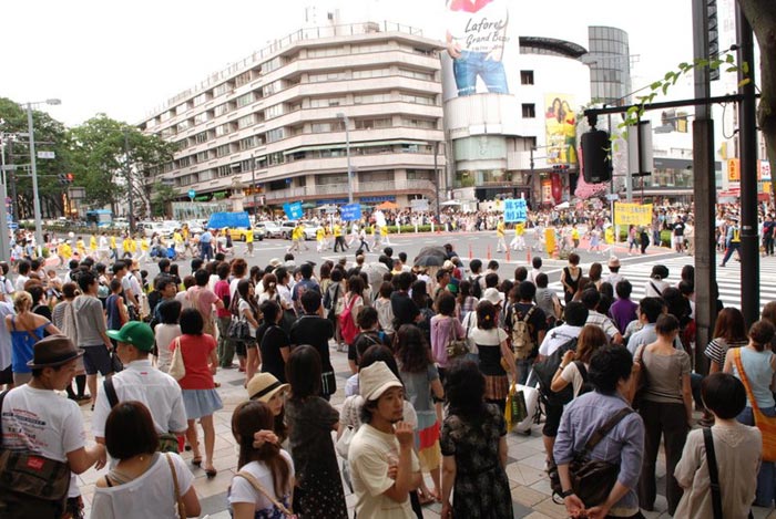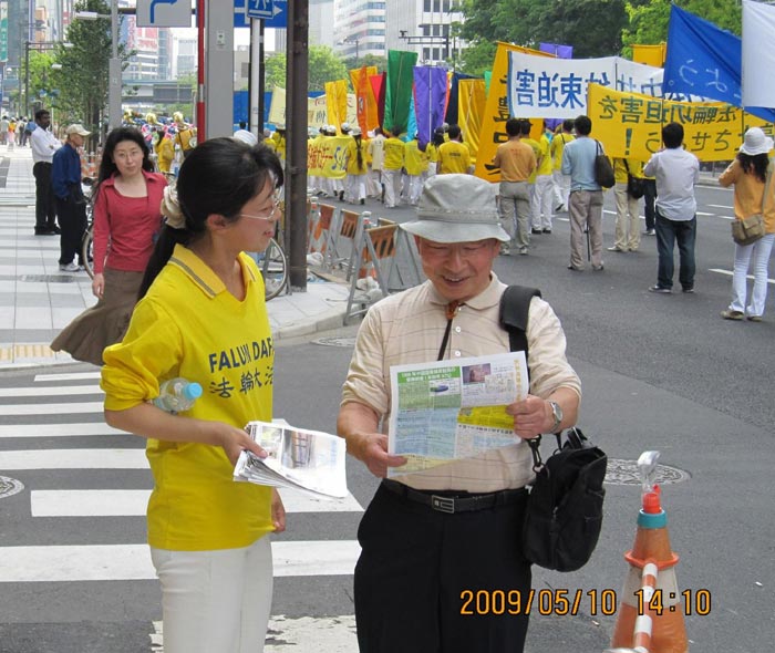 ![]() 2009年5月10日,日本法轮功学员在东京繁华市区游行庆祝世界法轮大法日 |