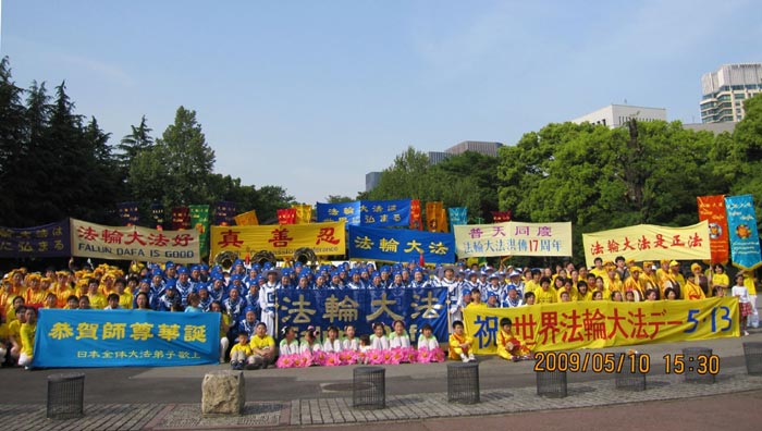 ![]() 二零零九年五月九日法轮功学员聚集在东京有名的日比谷公园合影恭祝师尊生日快乐 |