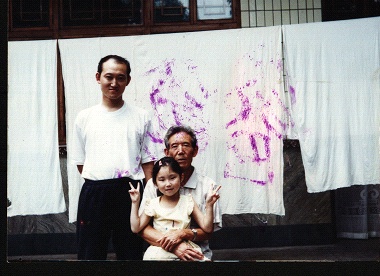 五岁的欣欣和刚刚从保定劳教所保外回来的刘永旺,还有爷爷合影
