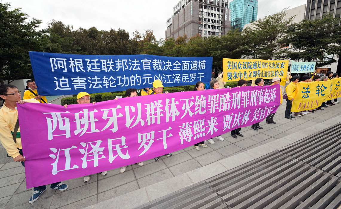 台中福华饭店外,“迫害法轮功,吉林你被刑事控告了!”