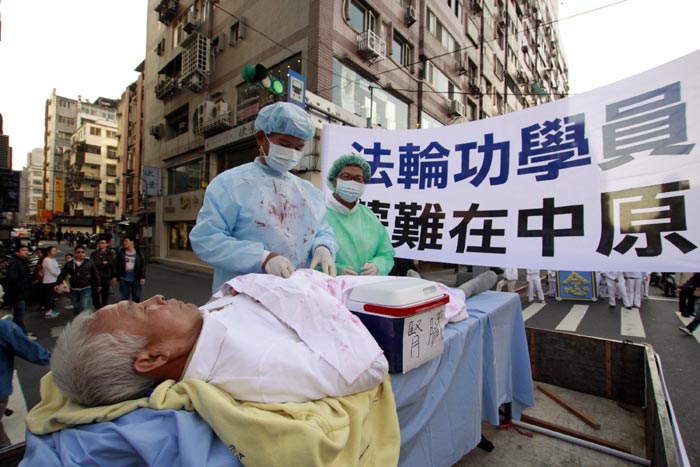 ![]() 模拟中共政府,活摘盗卖法轮功学员器官。 |