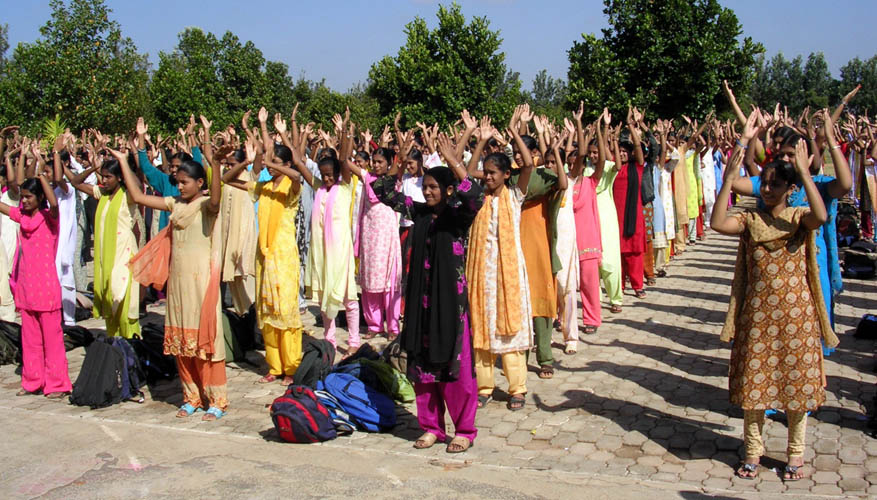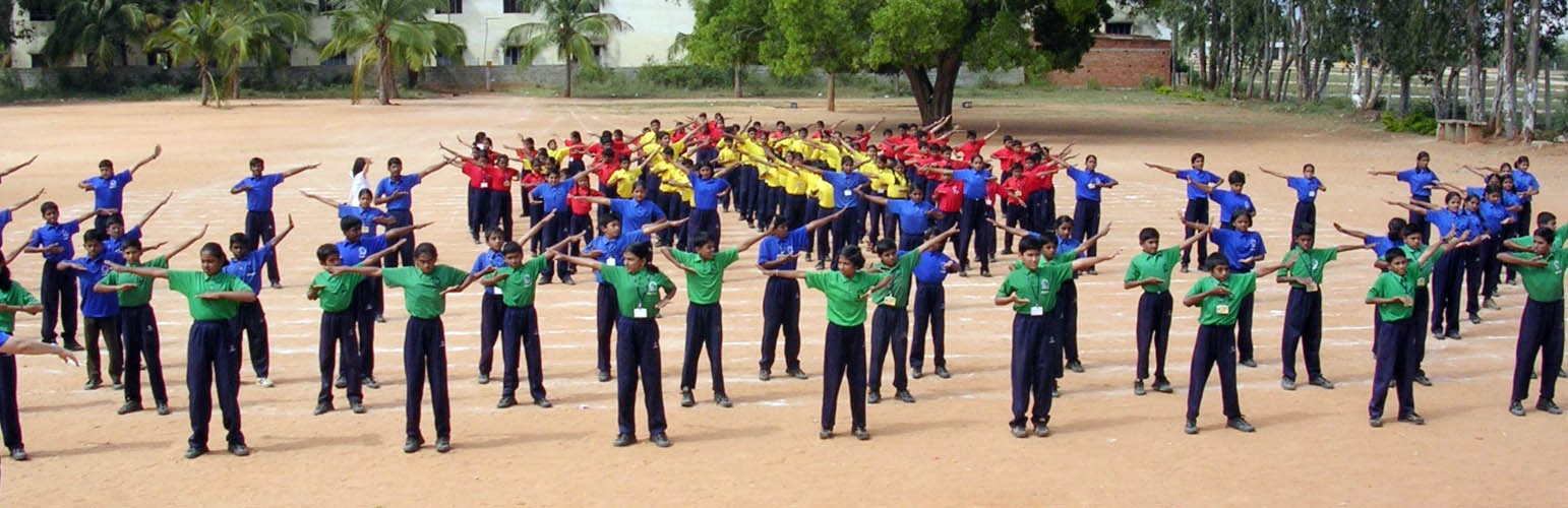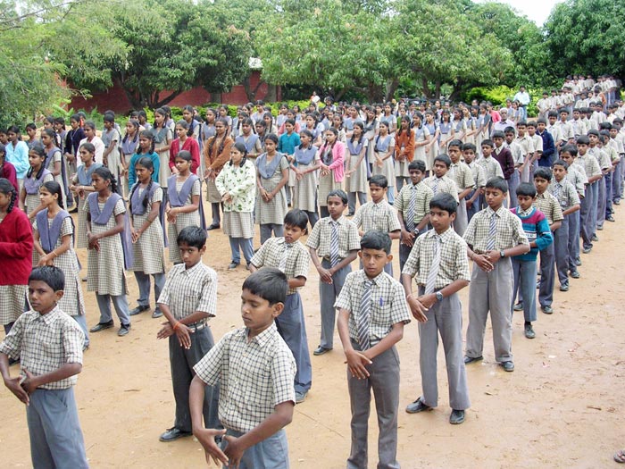 另一所SRI K.V.英语学校距班加罗尔市超过一百公里,共有八百位学生,校长表示,这功法非常值得推广,才短短三星期,现在全校集体炼功。