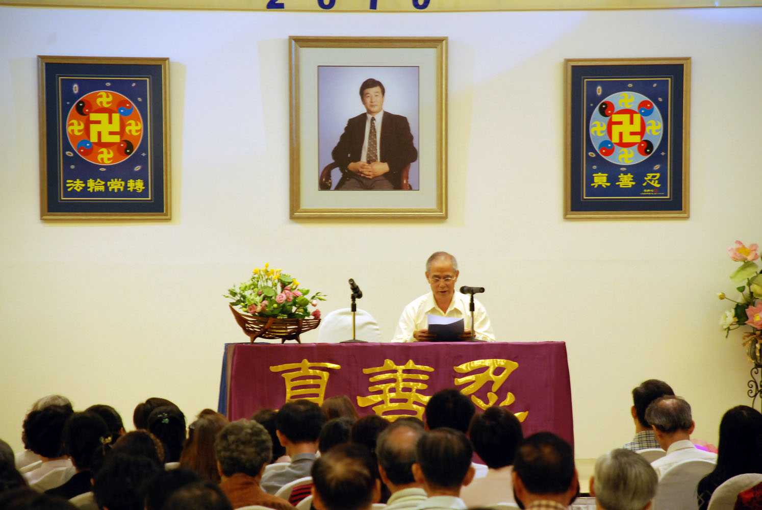 新学员柏先生修炼之前的大半生浑浑噩噩,曾因染上赌瘾而倾家荡产。他开场便说:“我是一个在地狱中被师父捞起来的新学员。”修炼大法后他脱胎换骨,不但明白了人生的真正意义,也改掉了以前的种种陋习使身边的亲人受益,他还利用工作之便向有缘人传播“法轮大法好”的真相。
