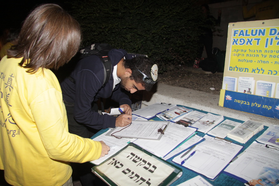 十二月二十六日,以色列法轮功学员在中领馆前举行了和平抗议活动。一些学员们举着“法轮大法好、世界需要真善忍、停止迫害法轮功”及“退党自救”等横幅,另有一些学员手捧着被中共迫害致死法轮功学员的遗像,还有一些学员炼功。路人静静地驻足观看横幅并在征签表上签名支持法轮功。