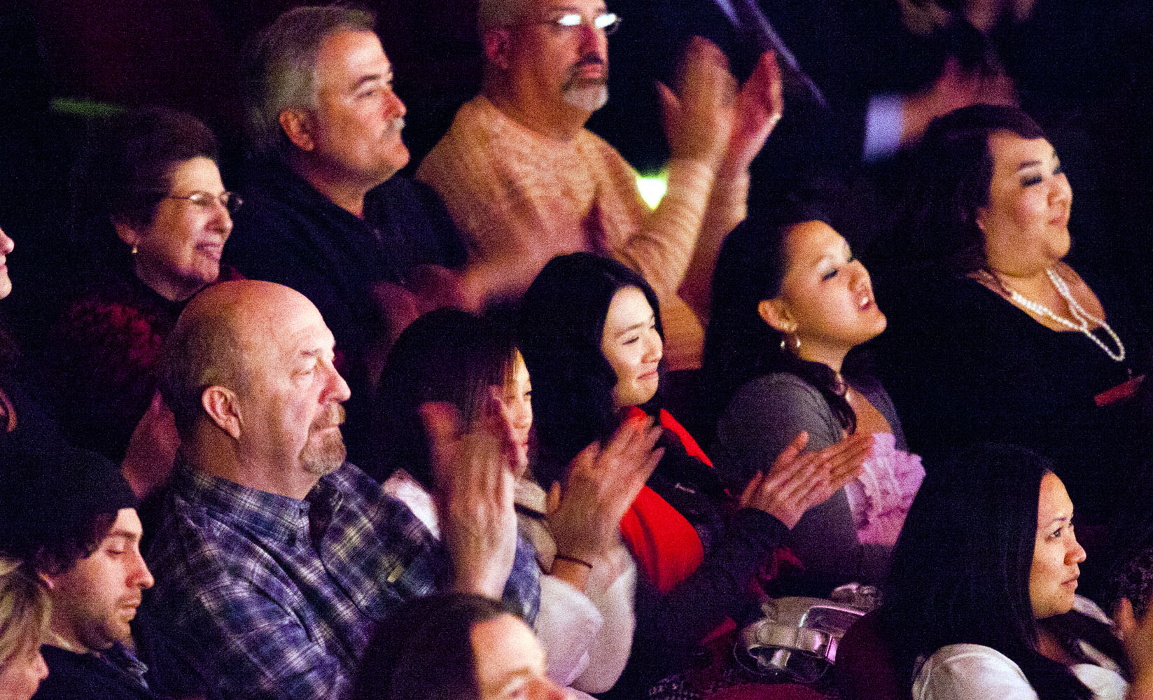金•高泊(Kim Goldberg)与先生鲍勃和女儿一起观赏了十二月二十六日晚在奥马哈的神韵演出