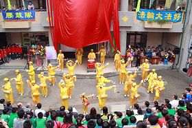 法轮功学员组成的腰鼓队受邀揭幕典礼演出