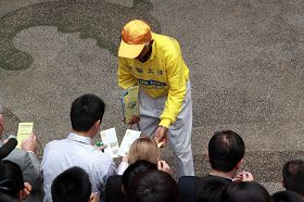 “法轮大法好”的横幅在会场飘扬,既醒目又庄严,法轮功学员应邀参加这次巧固球联合总部的设立活动,让与会的国内、外贵宾更了解法轮功美好的真相。