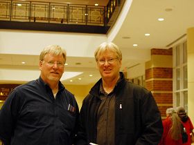 著名博客作家吉姆•霍夫特(右)和孪生哥哥观看神韵