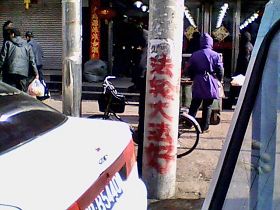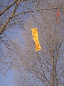 最热闹的大年三十本县城里的各主要街道、商场门前的电线杆上,及桥头出现的“法轮大法好”的真相标语。初一仍然还在。