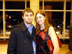 空手道黑带尼克·阿贝尔(左)和太太一同观看神韵演出