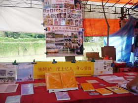 法轮功学员不停地给民众讲述法轮大法的美好,并向他们介绍功法特点,有几个人还要了电话准备学功。有的人买了中文的《转法轮》,也有的买了英文《转法轮》,还有一些人主动翻阅资料及索取资料。