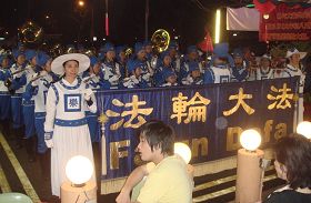 由法轮功学员组成的天国乐团、腰鼓队和歌唱及古筝演奏小组,在大年初八接受新加坡财神咖啡店的邀请,以独特的文艺表演形式向当地民众贺年,传播“真、善、忍”的福音。