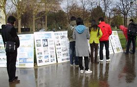 【明慧网二零一零年二月二十三日】中国新年的第一个周末,巴黎埃菲尔铁塔景点迎来了很多中国大陆同胞,其中明真相的一百三十五位大陆游客选择“三退”(退出中共党、团、队),祈福虎年吉星高照。