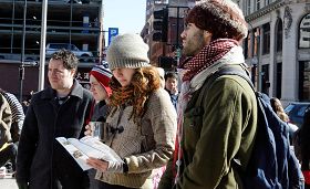 许多华人带着喜悦急切地接过《明慧周刊》,当学员善意地告诉他们记住“法轮大法好”时,他们连连点头。一华裔告诉学员说,“这(法轮功)才是最好的新年礼物。”