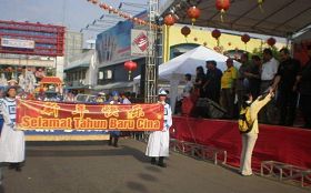 印尼政府近几年来开始注重中国新年的庆祝,这项大游行是由巴淡岛市政府赞助,巴淡华人公会所主办的活动。游行主要路经俗称唐人街的华人集中地区。由法轮功学员组成的天国乐团在游行前面队伍中,演奏《法轮大法好》等多首乐曲,雄伟嘹亮的乐音震撼人心。腰鼓队金黄明亮的服装、优美的鼓声获得了观众们的好评。
