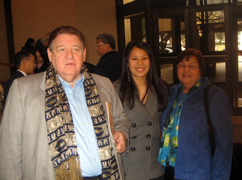![]() 俄克拉荷马州西南州立大学的音乐教授夫妇James Wintle(左)、Betty Wintle(右),以及他们的学生。 |