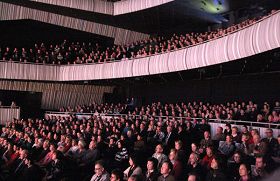 观众凝神欣赏神韵巡回艺术团在比利时布鲁日的最后一场演出