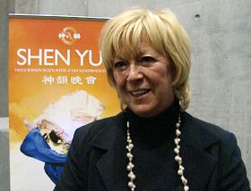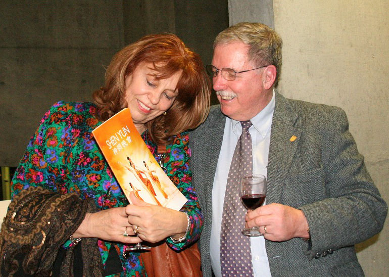 她继续说道:“神韵能来到本地简直太好了,东方的文化如此不同。我喜欢女演员们的安宁、温柔和优雅。西方文化显得紧张忙碌,但东方文化使我感到安宁而喜悦,所以我非常喜爱东方文化。”