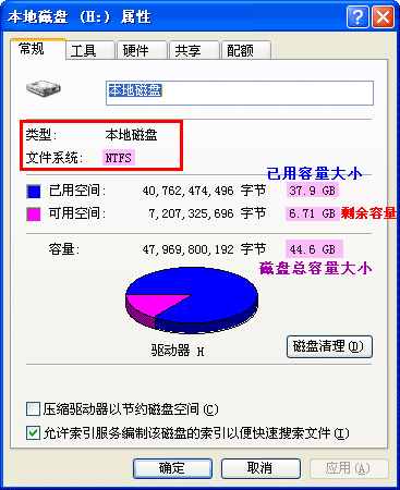 补充1:判断硬盘分区格式的步骤,用右键点该盘符——属性——文件系统,会显示该盘是什么格式。如果显示的是FAT32就无法直接复制或者解压缩DVD镜像文件了。例如下图就是格式为NTFS的情况,可以保存 4G 以上的大文件: