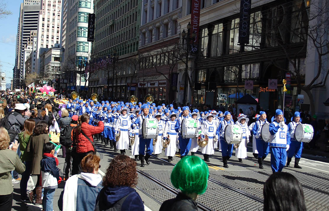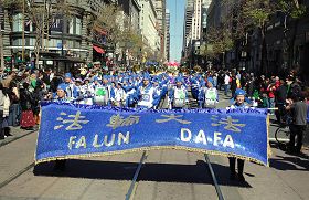 【明慧网二零一零年三月十四日】(明慧记者王英旧金山报导)三月十三日上午,旧金山第一百五十九届圣帕翠克游行在旧金山市中心登场。北加州法轮功学员应邀参加了旧金山圣帕翠克游行。法轮功学员的队伍博得了民众的热烈欢迎。