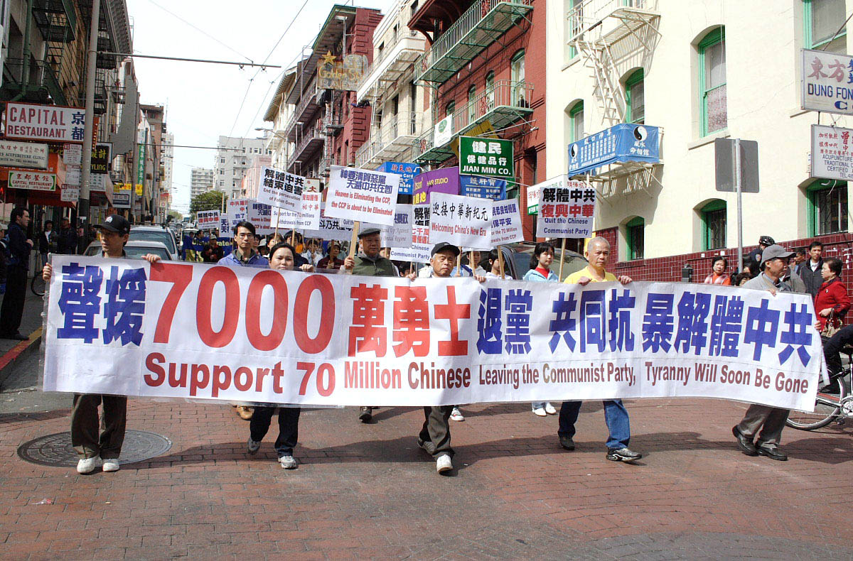二零零四年十一月十九日,《九评共产党》的发表引发了三退大潮,至今年三月二十一日,在大纪元网站上公开声明退出中共党、团、队的人数已经达到七千多万人。