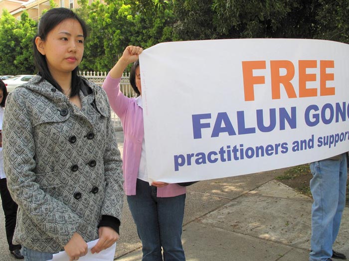 法轮功学员洛杉矶中领馆前吁关注被押亲人(图)