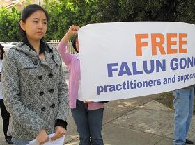 ![]() 3月25日,法轮功学员在洛杉矶中领馆前抗议中共继续迫害法轮功,并呼吁营救被非法关押的亲属。 |