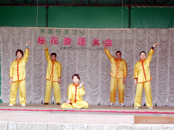 ![]() 法轮功学员在“第18届水源樱花节”上表演法轮功的五套功法 |