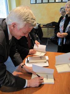 ![]() 《血腥的器官摘取》的作者之一,加拿大前亚太司司长大卫•乔高(David Kilgour),在加拿大著名学府——麦吉尔大学举办的发布会上现场签字售书。 |