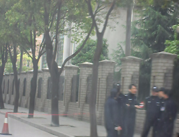 ![]() 在法院门口警戒线内,此时除了便衣谁还敢站在里面 |