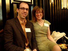 芝加哥公共广播电台部门主任杰夫.邓拉普和太太在贵宾招待会上。