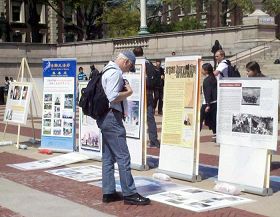 法轮功真相图片展在纽约哥伦比亚大学图书馆前举行