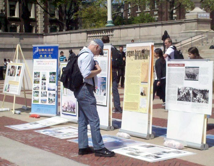 哥大心理学教授罗伯特·克里策曼表示:“哥大信奉言论自由,人们都可以表达自己的观点。”他从展览中看到法轮功学员在中国经历的严重迫害。克里策曼说:“法轮功学员遭受了严重迫害。我们应该了解世界其它地方人们的遭遇。他们能在这里展览很好。”