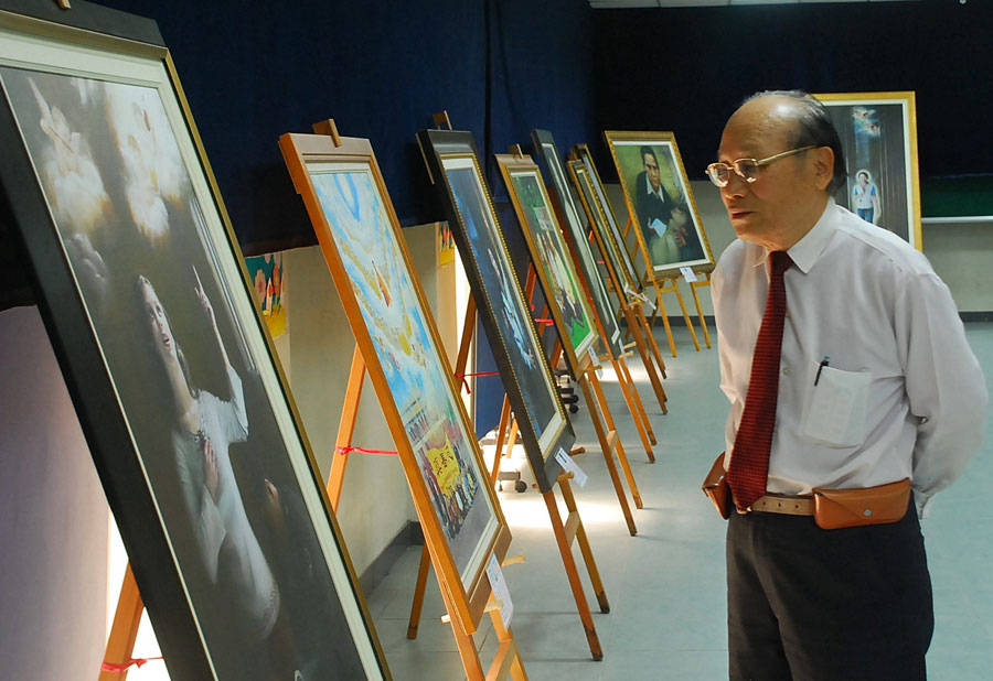 美展开幕这天,许多来看画的乡民都觉得,中共对待善良修炼人的酷刑没有天理。有一群小学生围着描绘法轮功学员受酷刑迫害的画作不停惊呼:“迫害太可恶了。”